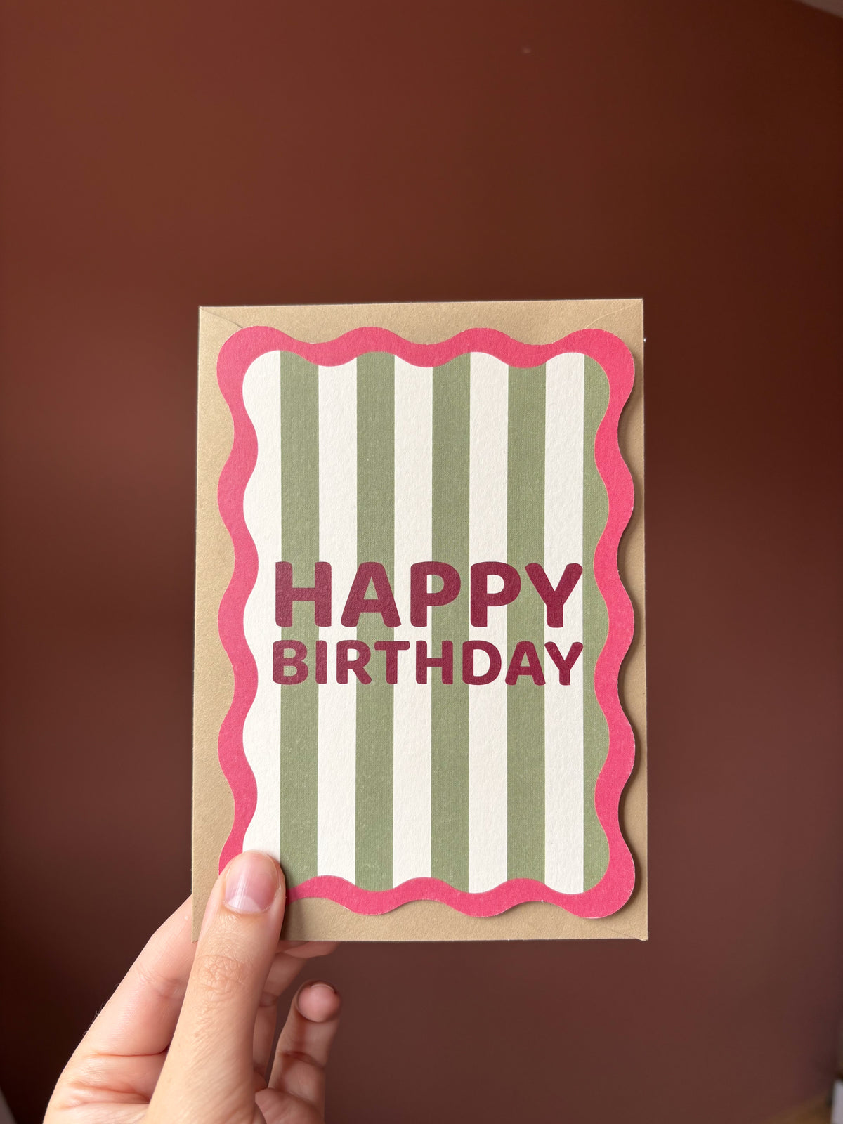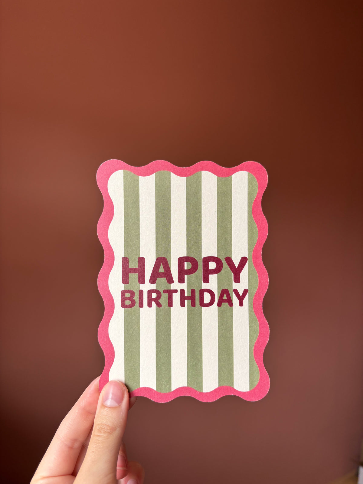 Happy Birthday - Dit gezellige verjaardagskaartje met golvende randen is een echte eye-catcher!