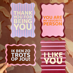 Heb altijd een kaartje bij de hand met deze wenskaartenset. Schrijf wat liefs op de achterkant en stop hem in een gezellige kraft envelop. Maak van ieder geefmoment een feestje met deze wenskaartenset. Maak het helemaal af met bijpassende cadeaulabels of stickers.