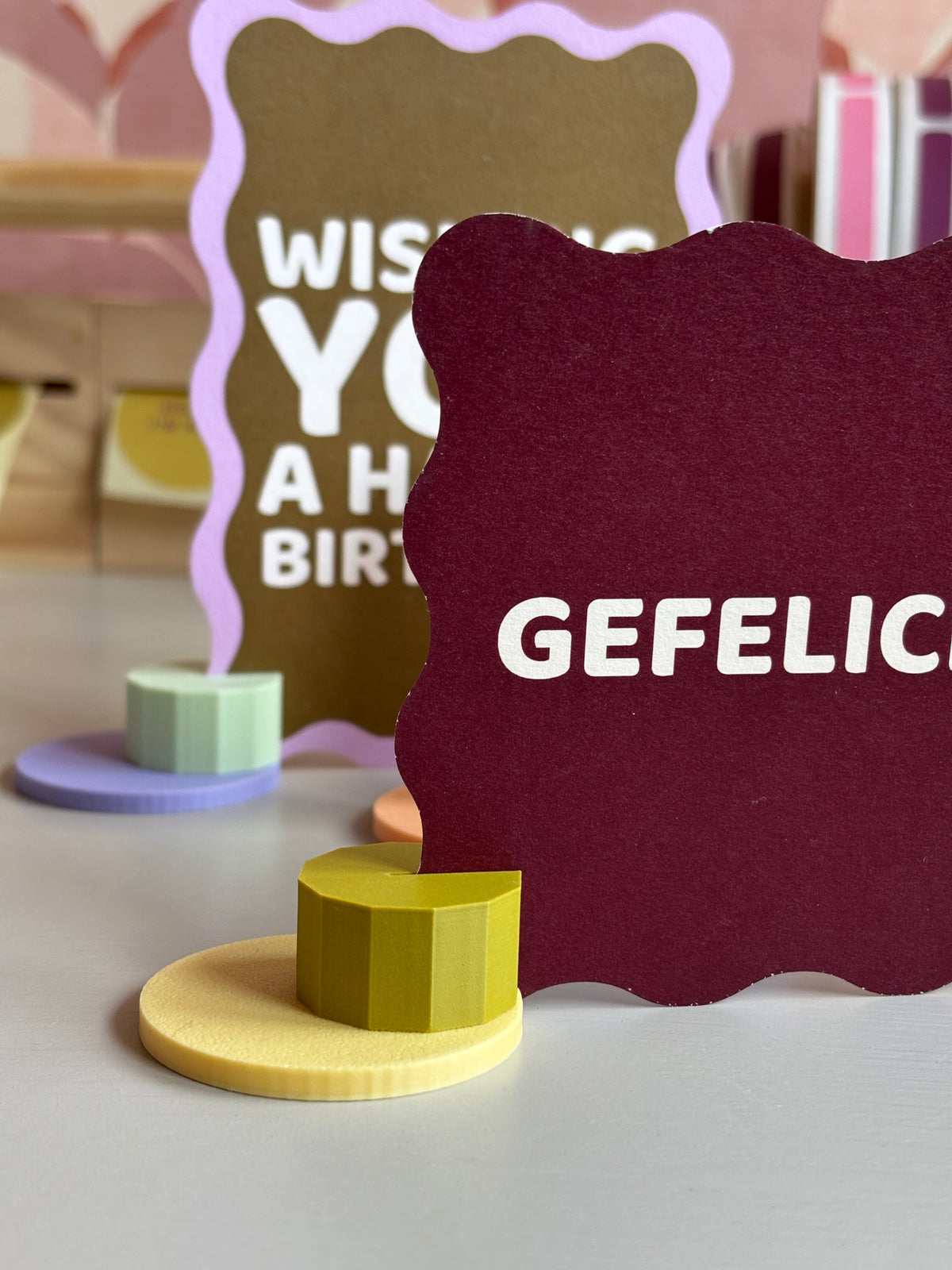 Gebruik de kaarthouder om verjaardagskaarten, felicitaties, mooie foto’s of inspirerende kaarten te tonen. Mix & match verschillende kleuren of combineer met de “TOON” kaarthouder voor een vrolijk en speels effect. Ook ideaal als cadeau-accessoire bij je wenskaarten.