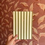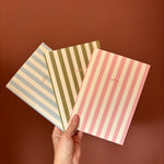 Wie houdt er niet van strepen? Deze fantastische notitieboekjes zijn voor echte stationary-lovers. Gebruik hem zelf om je gedachten of to do's op papier te zetten of geef hem cadeau! Verkrijgbaar in verschillende kleuren.