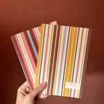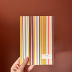 Wie houdt er niet van strepen? Deze fantastische retro notitieboekjes zijn voor echte stationary-lovers. Gebruik hem zelf om je gedachten of to do's op papier te zetten of geef hem cadeau! Verkrijgbaar in verschillende kleuren.