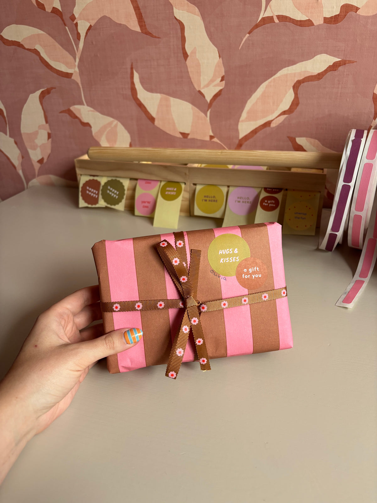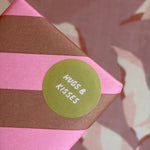Hugs & Kisses - Een sticker met een lieve boodschap. Perfect om cadeautjes op te fleuren of als sluitsticker te gebruiken voor een wenskaart.